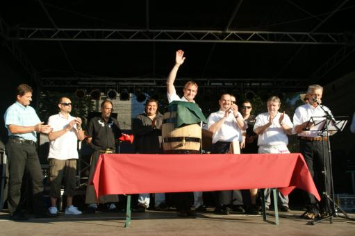 Traditioneller Fassanstich durch den Bürgermeister.